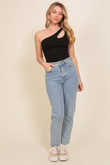 PONTE ONE SHOULDER BODYSUIT - BLACK