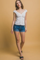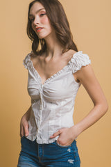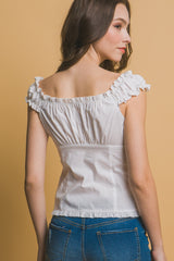 RUFFLE TRIM BUTTON UP TOP - WHITE
