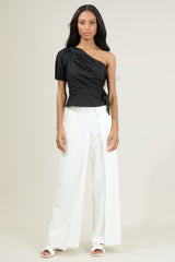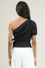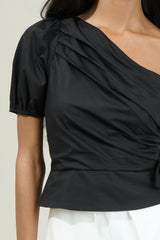 VERDUSA ONE SHOULDER PLEATED TOP - BLACK