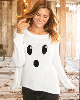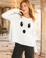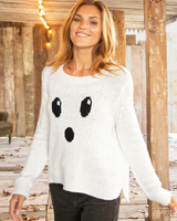This incredibly soft and comfy crewneck sweater features a ghost face graphic knit directly into the center front. The boxy, cropped body provides a flattering fit, with side slits added to the hem. Additional details include ribbed construction on the neckline and cuffs.