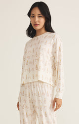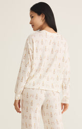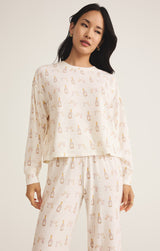 This brushed knit top brings all the vintage holiday vibes with an allover cocktail print for a playful twist. Buttery soft and long-sleeved, it’s perfect for kicking back and enjoying the festive season in total comfort.