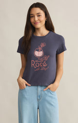 Your new favorite tee has arrived, featuring an effortlessly cool fit and a playful "Rosé All Day" graphic with a fun wine graphic. Crafted from soft 100% cotton jersey, this short sleeve crew neck is made for laid-back days with a hint of vintage charm.