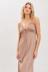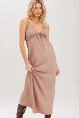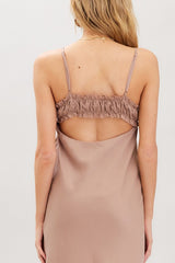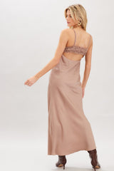 OPEN BACK SATIN MAXI DRESS - MOCHA