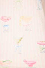 A toast to bedtime, this full-length PJ pant features an allover cocktail print on a baby-pink and white striped base, crafted from double-brushed pointelle with a soft, easy drape. A white drawstring at the waist and scalloped trim at the side pockets add a playful finish that’s equal parts soft and sweet.