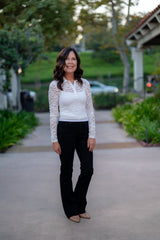 Designed with a flattering mid-rise waist and a clean, elongated bootcut silhouette, this jean effortlessly balances comfort and polish. They hug the hips and thighs before a subtle flare at the ankle, finished with a clean regular hem for versatile styling.