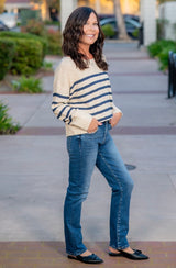 A fall trending favorite, this lightweight striped sweater features a wide neckline, dropped shoulders, and a relaxed fit. Perfect for layering and effortless seasonal style.
