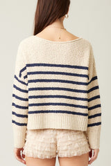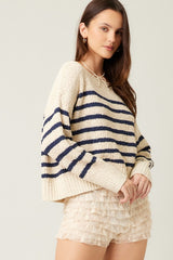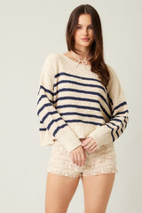 STRIPED LIGHTWEIGHT SWEATER - NAVY/CREAM