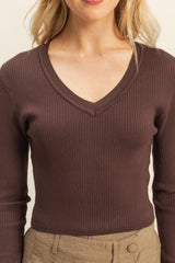 Embrace The Epitome Of Modern Chic With This Striking V-Neck Sweater. The Sweater's Ribbed Texture And Form-Fitting Silhouette Create A Flattering Frame, Accentuating Natural Curves While Keeping Comfort At The Forefront.